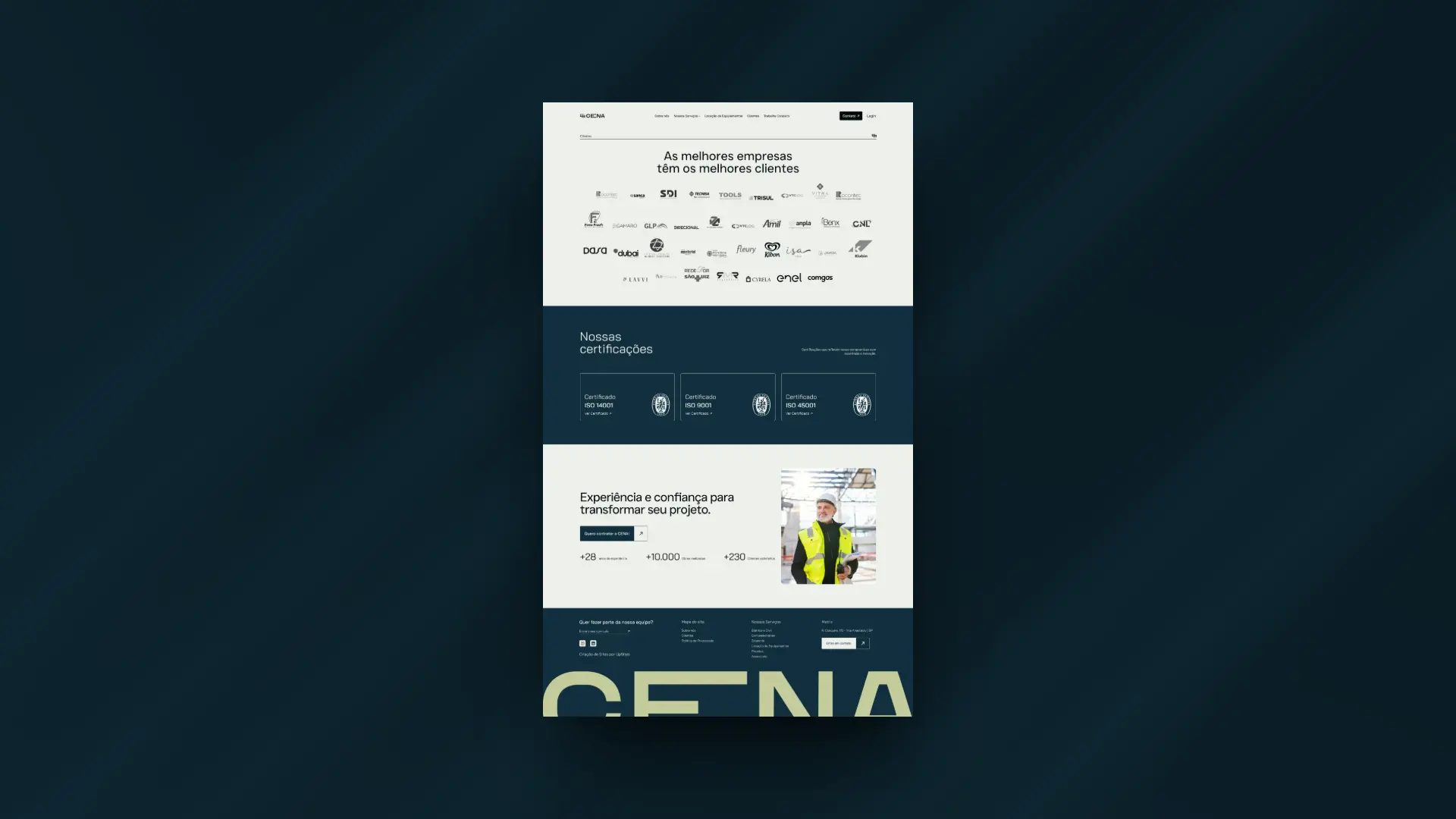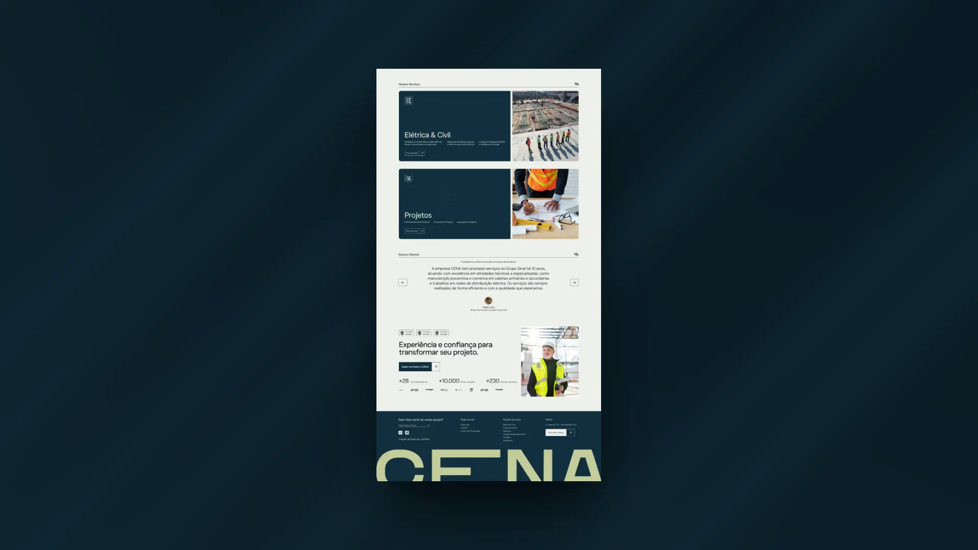 Com o rebranding, surgiram novas possibilidades visuais e conceituais e usei isso a favor do projeto. Formas, imagens e interações foram pensadas para gerar memória. Minha ideia não era que a pessoa apenas navegasse e saísse, mas que ela lembrasse da marca. Que, ao visitar outros sites, o da CENA ainda viesse à cabeça como referência.